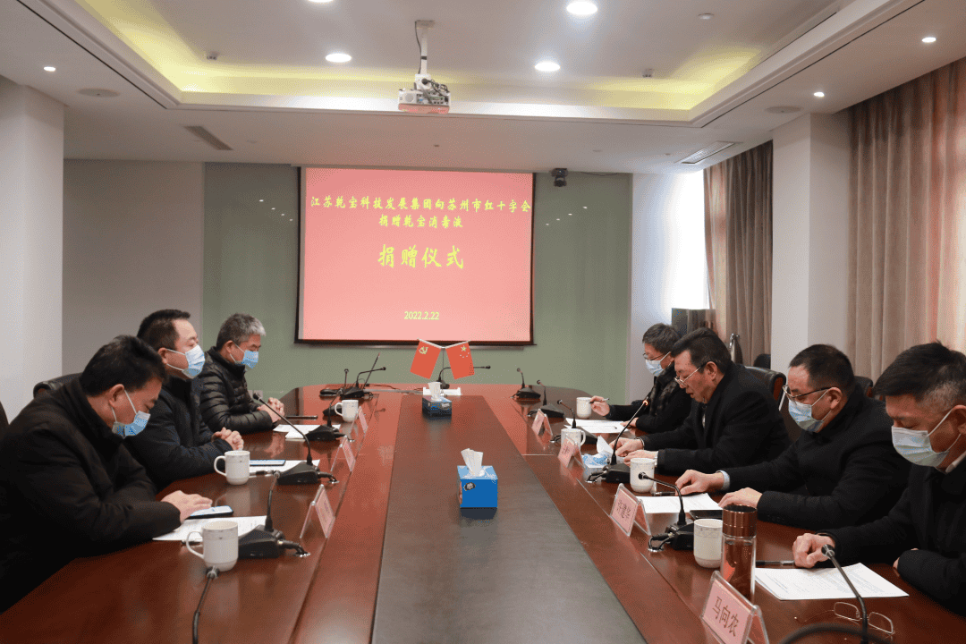 2月22日上午,乾寶消毒液捐贈儀式在太湖書院三樓會議室舉行,蘇州紅十字會副會長張獻忠、賑濟救護部部長馬明、江蘇乾寶科技發展集團有限公司總裁王翼寧、常務副總裁兼蘇州香山法原設計院院長許建華、副總裁兼蘇州天堂美景觀綠化工程有限公司總經理馬向農、江蘇乾寶生物科技有限公司總經理丘東、太湖書院執行院長兼太湖智庫主任王建明教授共同參加了捐贈儀式。儀式由江蘇乾寶生物科技有限公司總經理丘東主持。 蘇州市紅十字...